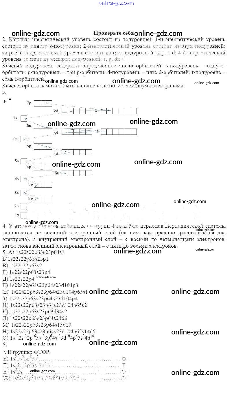 Готовые домашние задания по Химии за 11 класс Рабочая тетрадь Габриелян, Яшукова Базовый уровень 2014 - Строение электронных оболочек атомов Проверьте себя