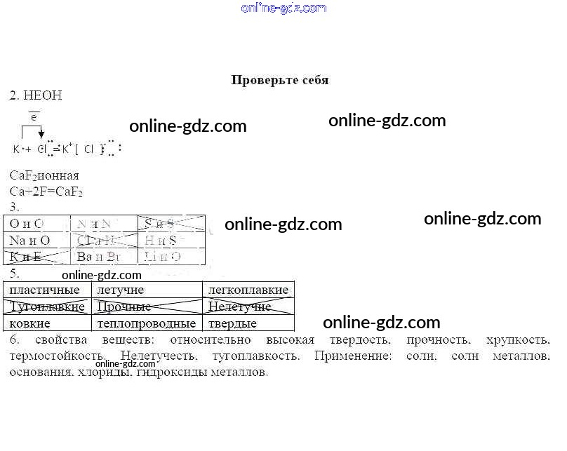 Готовые домашние задания по Химии за 11 класс Рабочая тетрадь Габриелян, Яшукова Базовый уровень 2014 - Ионная связь. Ионная кристаллическая решетка Проверьте себя