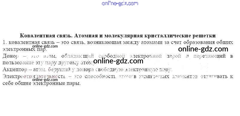 Готовые домашние задания по Химии за 11 класс Рабочая тетрадь Габриелян, Яшукова Базовый уровень 2014 - Ковалентная связь. Атомная и молекулярная кристаллические решеткисвязь. Ионная кристаллическая решетка 1