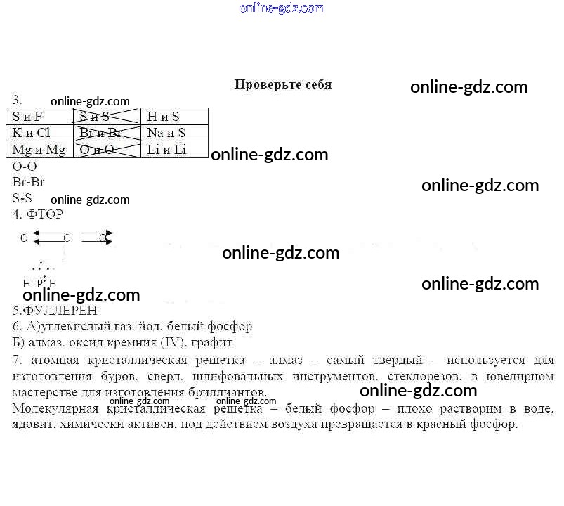 Готовые домашние задания по Химии за 11 класс Рабочая тетрадь Габриелян, Яшукова Базовый уровень 2014 - Ковалентная связь. Атомная и молекулярная кристаллические решеткисвязь. Ионная кристаллическая решетка Проверьте себя