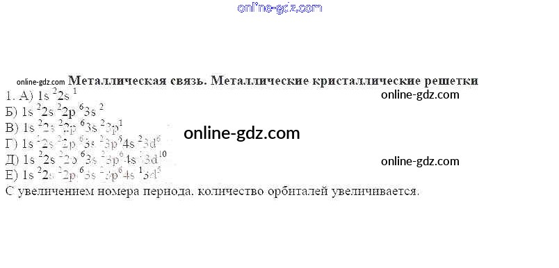 Готовые домашние задания по Химии за 11 класс Рабочая тетрадь Габриелян, Яшукова Базовый уровень 2014 - Металлическая связь. Металлические кристаллические решетки 1