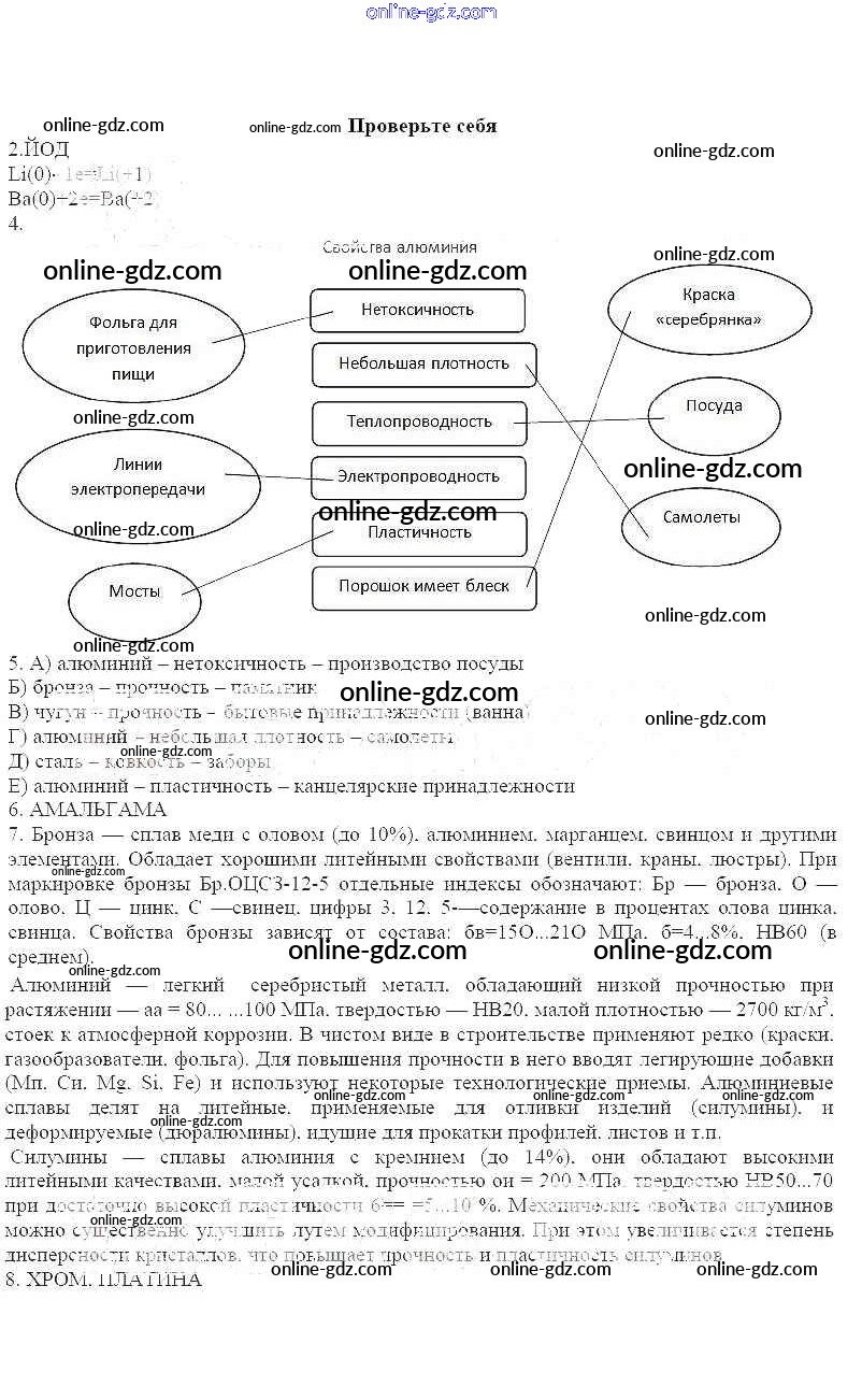 Готовые домашние задания по Химии за 11 класс Рабочая тетрадь Габриелян, Яшукова Базовый уровень 2014 - Металлическая связь. Металлические кристаллические решетки Проверьте себя