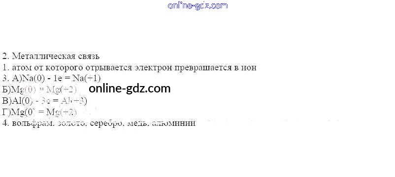 Готовые домашние задания по Химии за 11 класс Рабочая тетрадь Габриелян, Яшукова Базовый уровень 2014 - Металлическая связь. Металлические кристаллические решетки 2