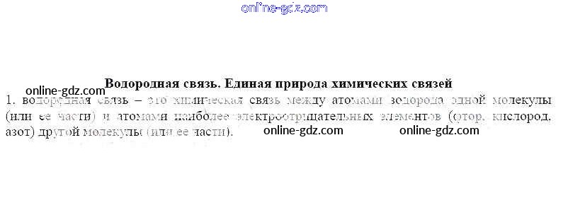 Готовые домашние задания по Химии за 11 класс Рабочая тетрадь Габриелян, Яшукова Базовый уровень 2014 - Водородная связь. Единая природа химических связей 1