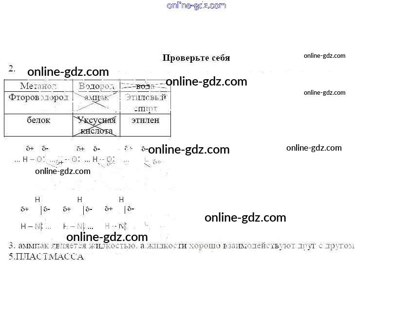 Готовые домашние задания по Химии за 11 класс Рабочая тетрадь Габриелян, Яшукова Базовый уровень 2014 - Водородная связь. Единая природа химических связей Проверьте себя