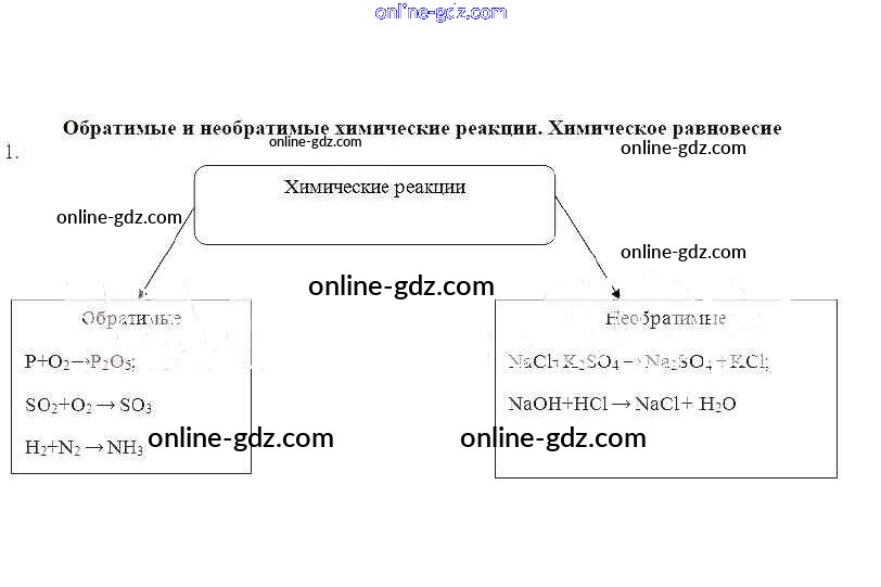 Готовые домашние задания по Химии за 11 класс Рабочая тетрадь Габриелян, Яшукова Базовый уровень 2014 - Обратимые и необратимые химические реакции. Химическое равновесие 1