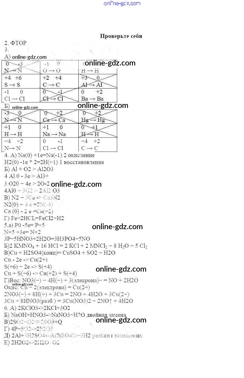 Готовые домашние задания по Химии за 11 класс Рабочая тетрадь Габриелян, Яшукова Базовый уровень 2014 - Окислительно-восстановительные реакции Проверьте себя