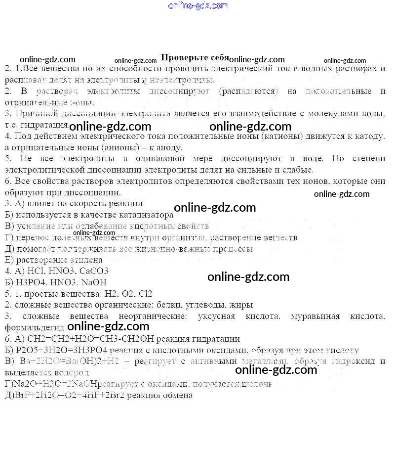 Готовые домашние задания по Химии за 11 класс Рабочая тетрадь Габриелян, Яшукова Базовый уровень 2014 - Роль воды в химических реакциях Проверьте себя