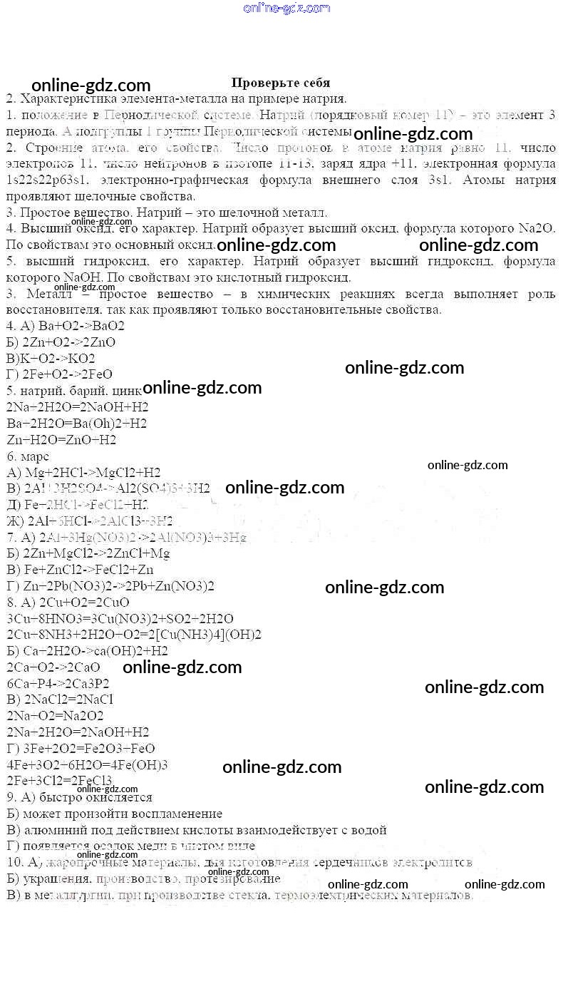 Готовые домашние задания по Химии за 11 класс Рабочая тетрадь Габриелян, Яшукова Базовый уровень 2014 - Металлы Проверьте себя