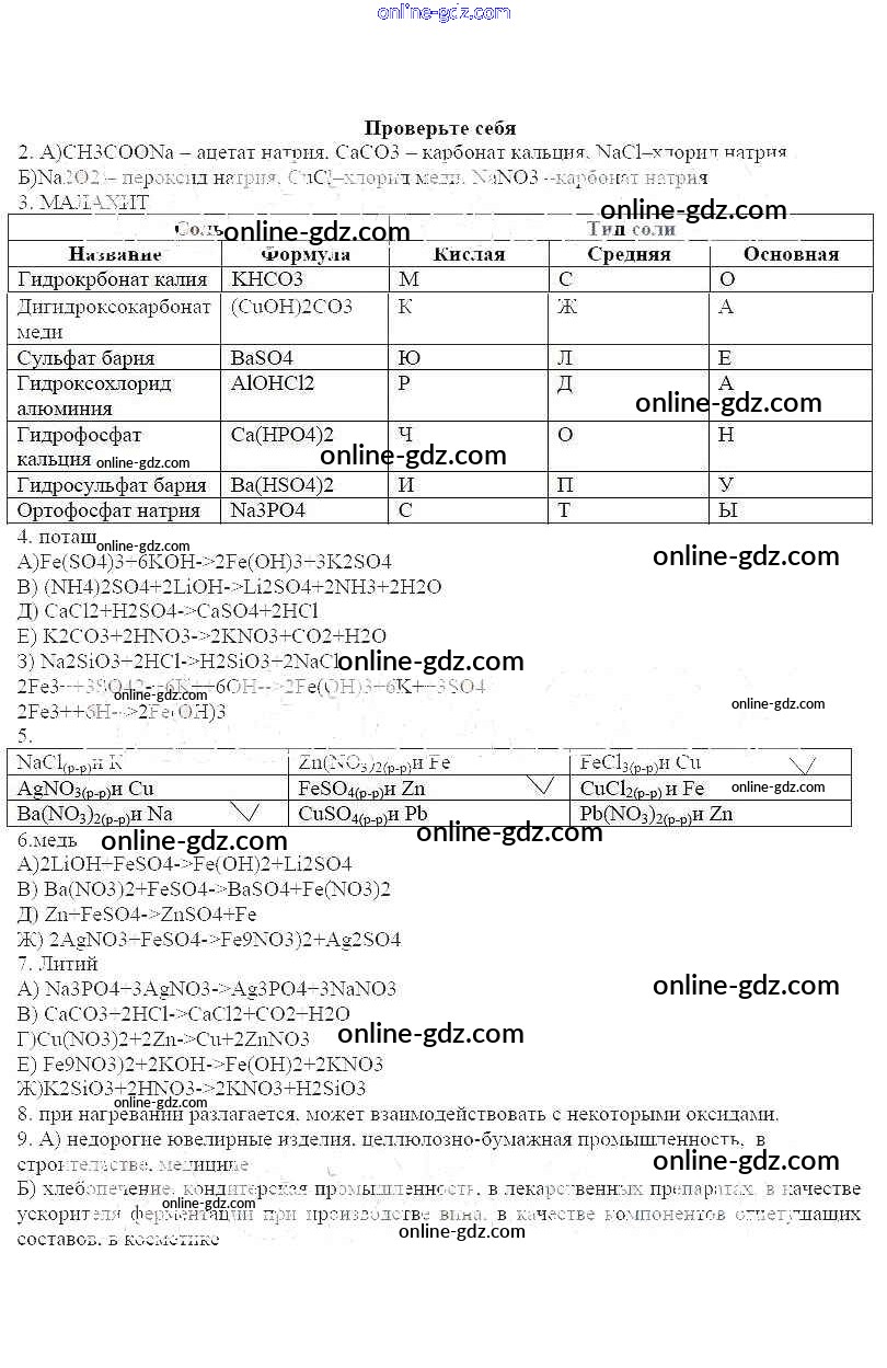 Готовые домашние задания по Химии за 11 класс Рабочая тетрадь Габриелян, Яшукова Базовый уровень 2014 - Соли Проверьте себя