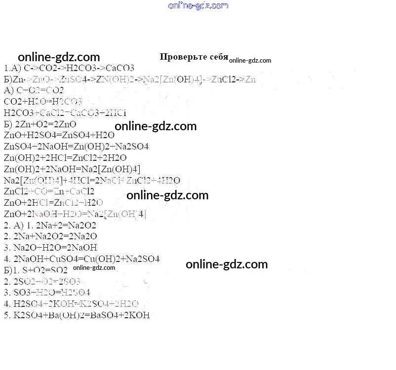 Готовые домашние задания по Химии за 11 класс Рабочая тетрадь Габриелян, Яшукова Базовый уровень 2014 - Генетическая связь между классами соединений Проверьте себя