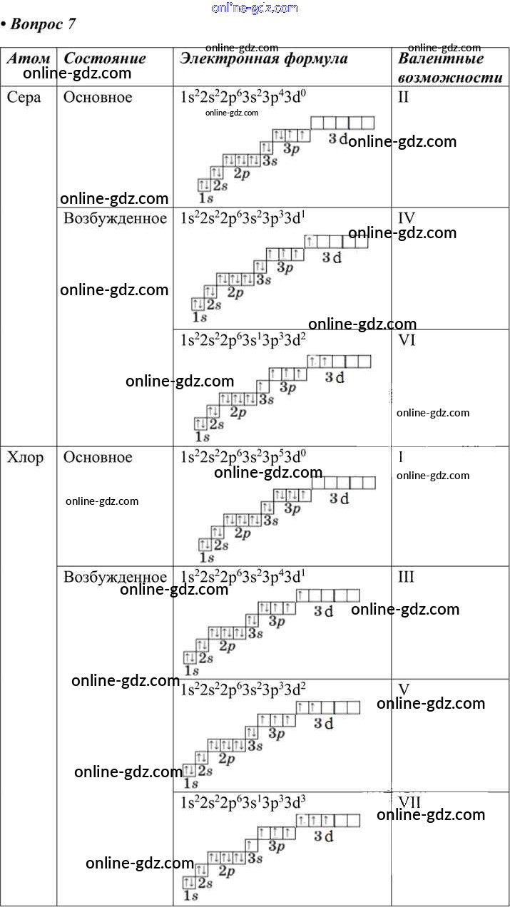Готовые домашние задания по Химии за 11 класс Учебник Габриелян, Лысова Вертикаль Углубленный уровень 2017 - §4. Валентные возможности атомов химических элементов 7