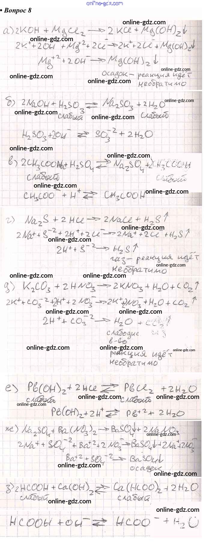 Готовые домашние задания по Химии за 11 класс Учебник Габриелян, Лысова Вертикаль Углубленный уровень 2017 - §15. Электролитическая диссоциация 8