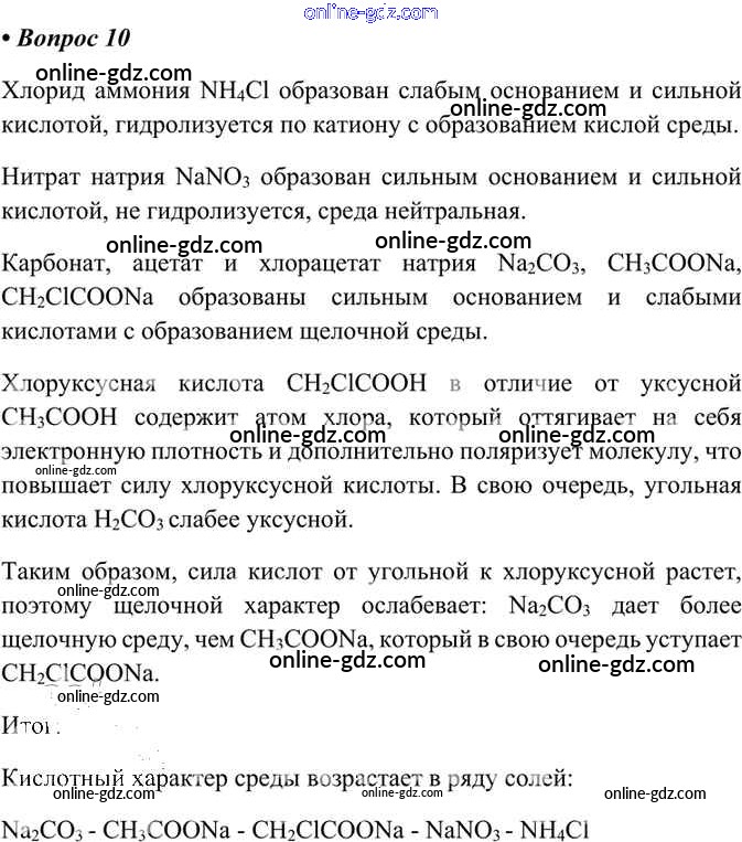 Готовые домашние задания по Химии за 11 класс Учебник Габриелян, Лысова Вертикаль Углубленный уровень 2017 - §16. Гидролиз 10