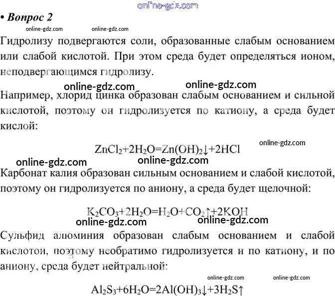 Готовые домашние задания по Химии за 11 класс Учебник Габриелян, Лысова Вертикаль Углубленный уровень 2017 - §16. Гидролиз 2