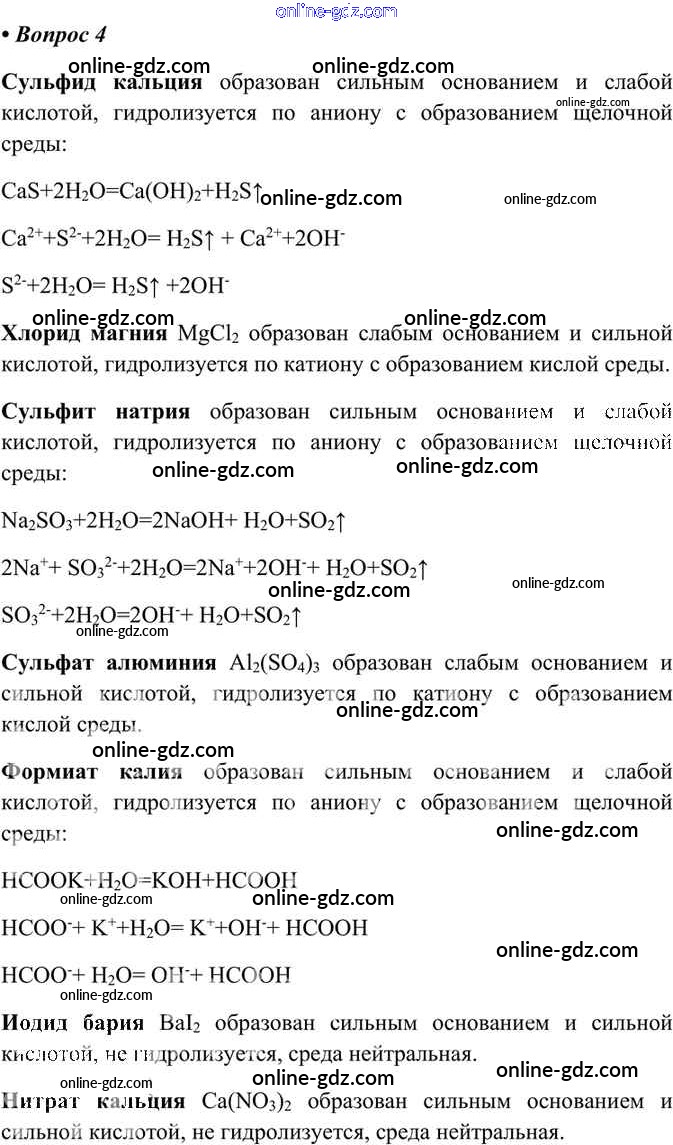 Готовые домашние задания по Химии за 11 класс Учебник Габриелян, Лысова Вертикаль Углубленный уровень 2017 - §16. Гидролиз 4