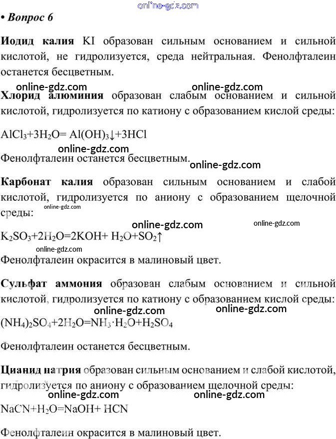 Готовые домашние задания по Химии за 11 класс Учебник Габриелян, Лысова Вертикаль Углубленный уровень 2017 - §16. Гидролиз 6