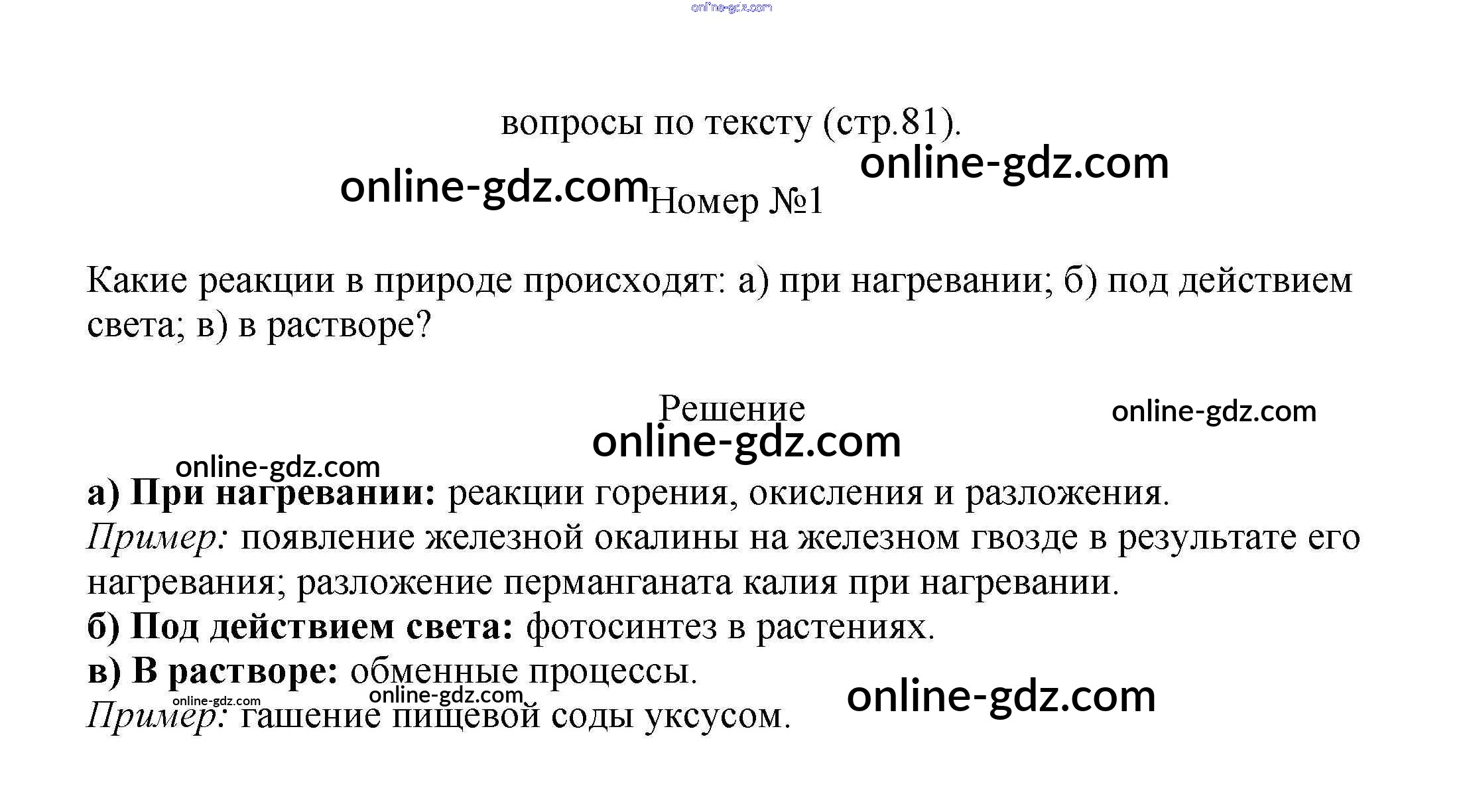 Готовые домашние задания по Химии за 7 класс Учебник Еремин, Дроздов 2020 - Вопросы по тексту §12. Превращения веществ - химические реакции стр.81