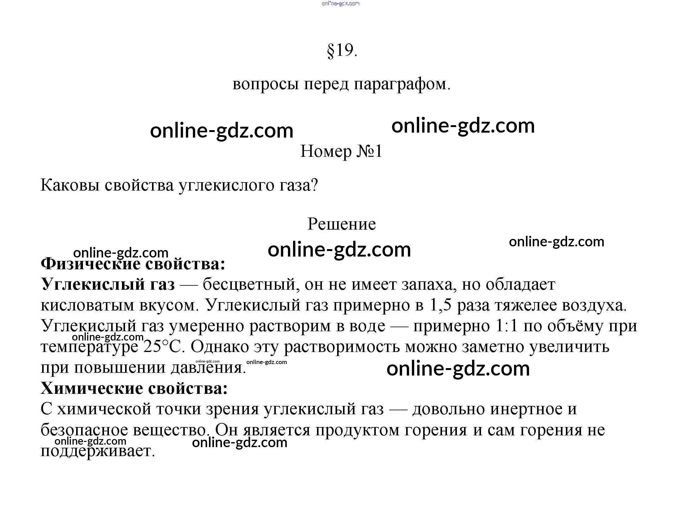 Готовые домашние задания по Химии за 7 класс Учебник Еремин, Дроздов 2020 - Вопросы перед параграфом §19. Углекислый газ 1