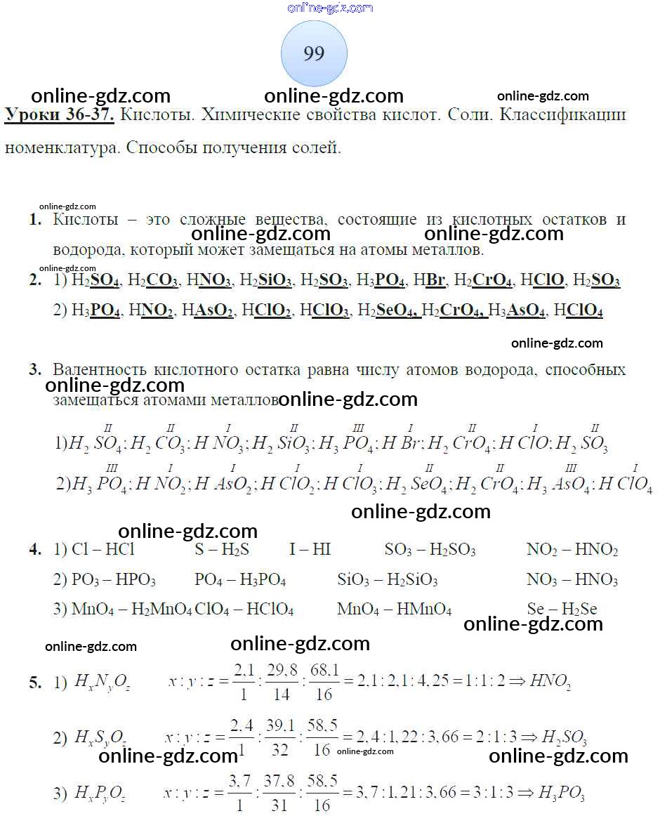 Готовые домашние задания по Химии за 8 класс Рабочая тетрадь Боровских УМК 2013 - Страницы 99