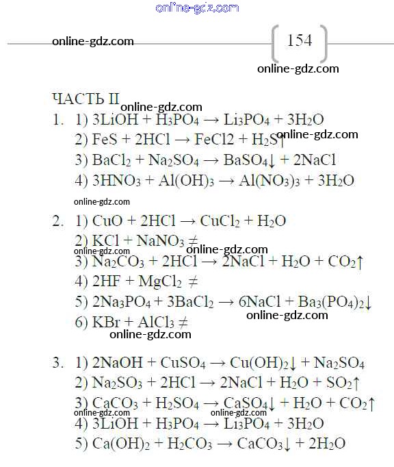 Готовые домашние задания по Химии за 8 класс Рабочая тетрадь Габриелян, Сладков УМК 2018 - Страницы 154