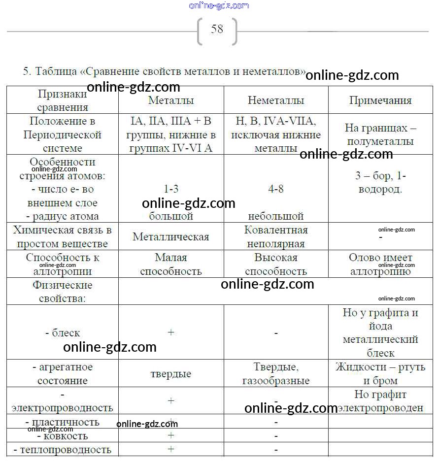 Готовые домашние задания по Химии за 8 класс Рабочая тетрадь Габриелян, Сладков УМК 2018 - Страницы 58