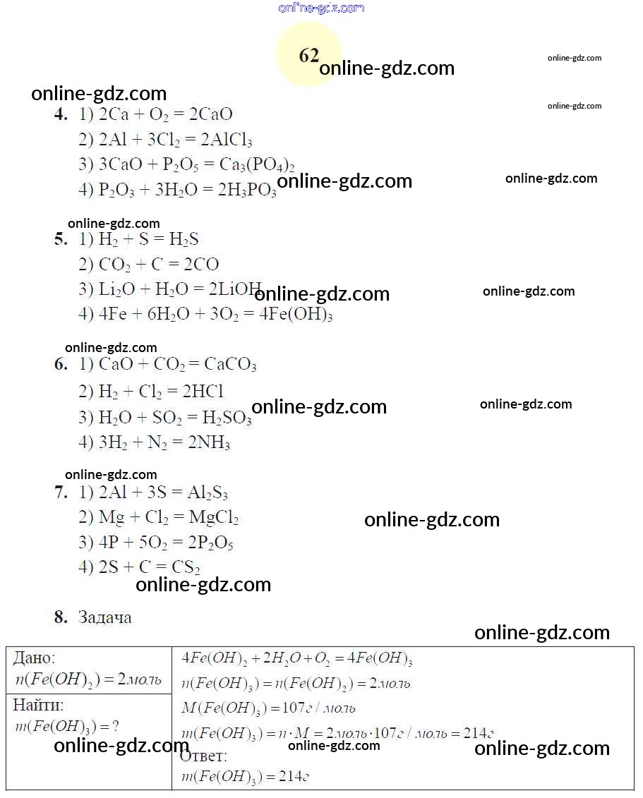 Готовые домашние задания по Химии за 8 класс Рабочая тетрадь Микитюк УМК 2015 - Страницы 62