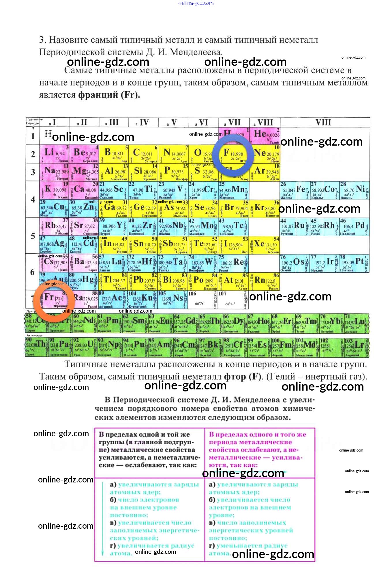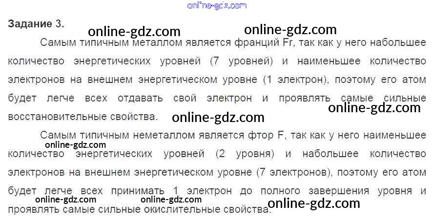 Готовые домашние задания по Химии за 8 класс Учебник Габриелян Вертикаль 2019 - §10. Изменение числа электронов на внешнем энергетическом уровне атомов химических элементов 3
