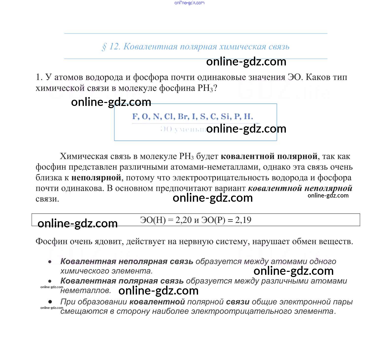 Готовые домашние задания по Химии за 8 класс Учебник Габриелян Вертикаль 2019 - §12. Ковалентная полярная химическая связь 1
