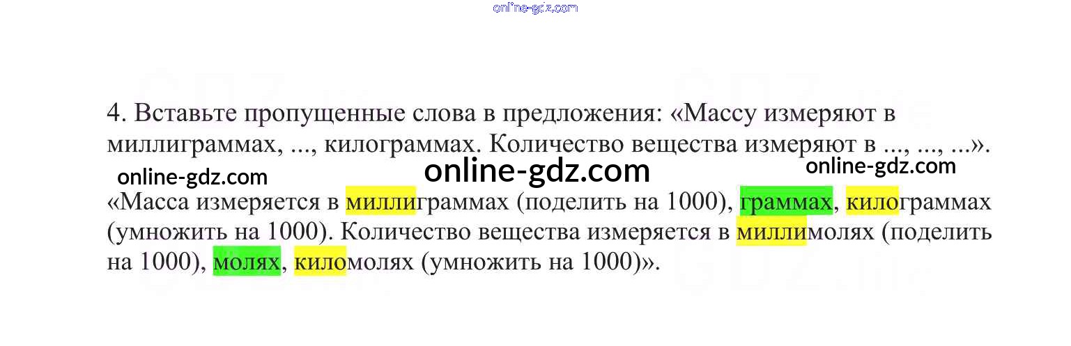 Готовые домашние задания по Химии за 8 класс Учебник Габриелян Вертикаль 2019 - §16. Количество вещества 4