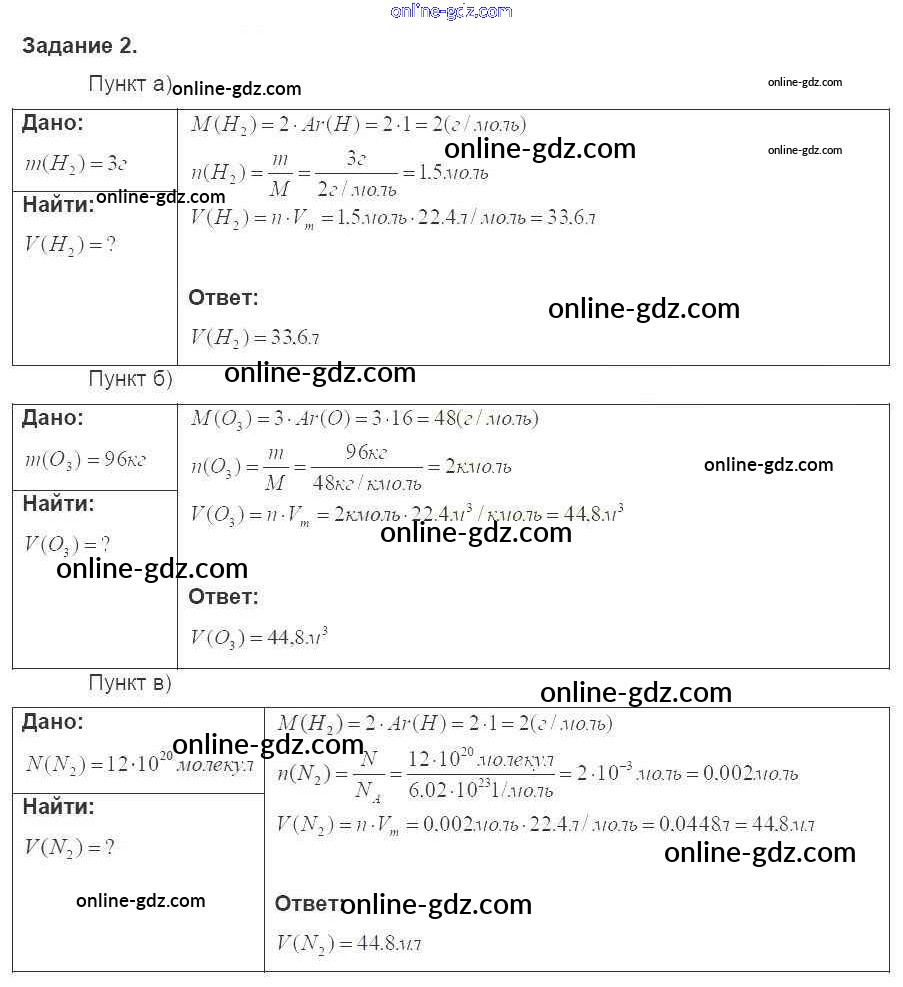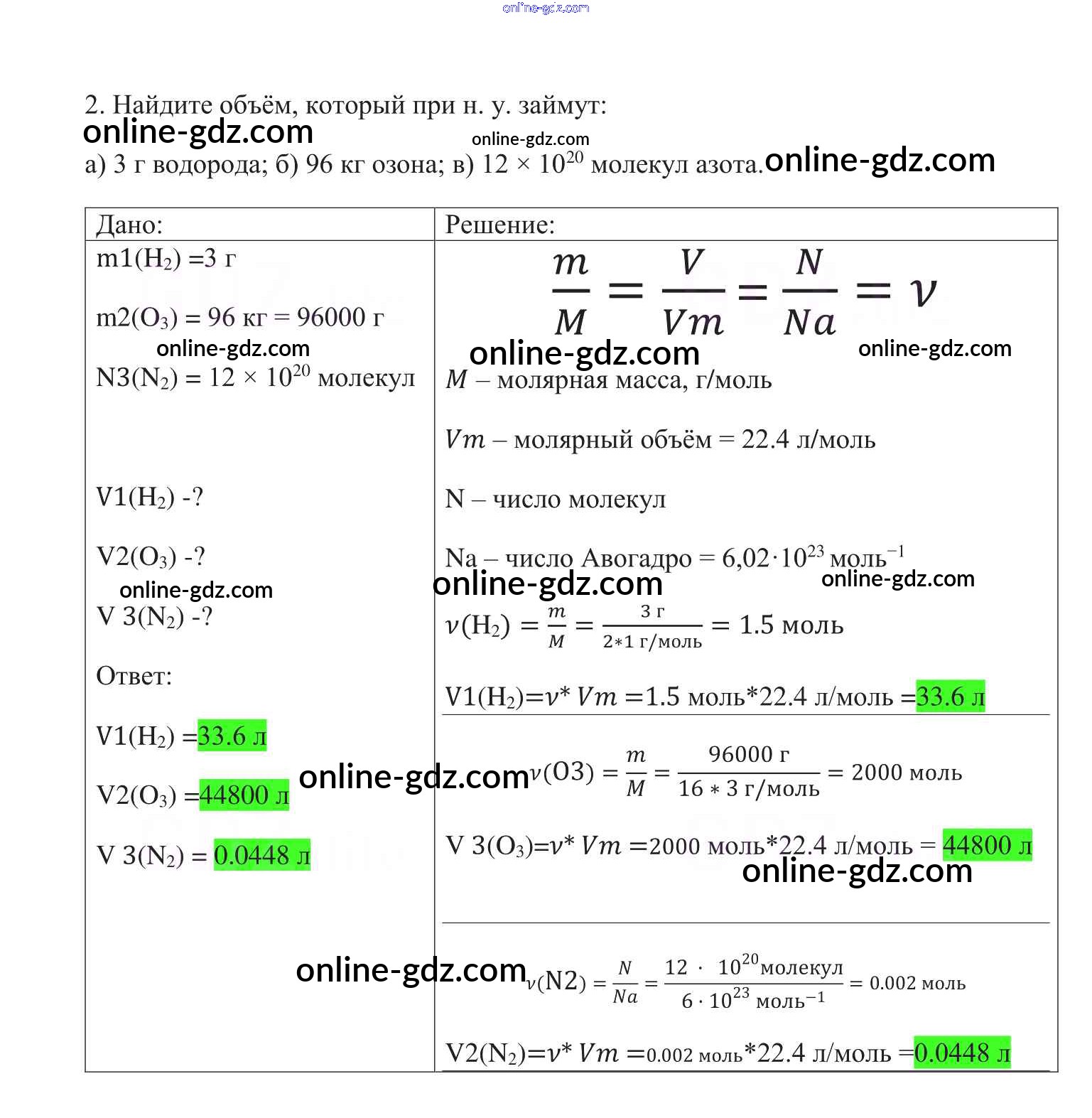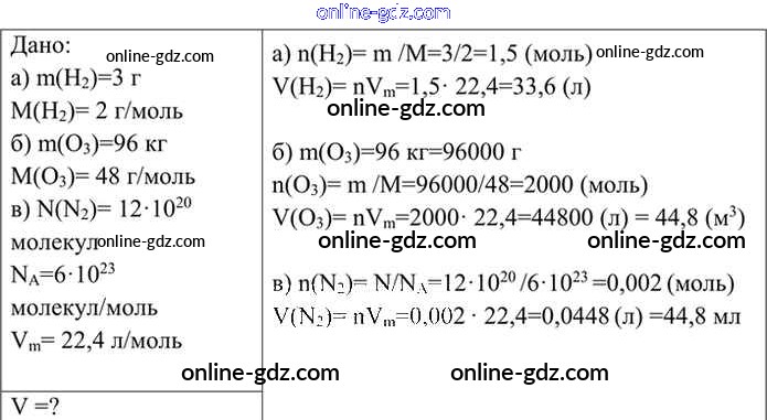 Готовые домашние задания по Химии за 8 класс Учебник Габриелян Вертикаль 2019 - §17. Молярный объём газов 2