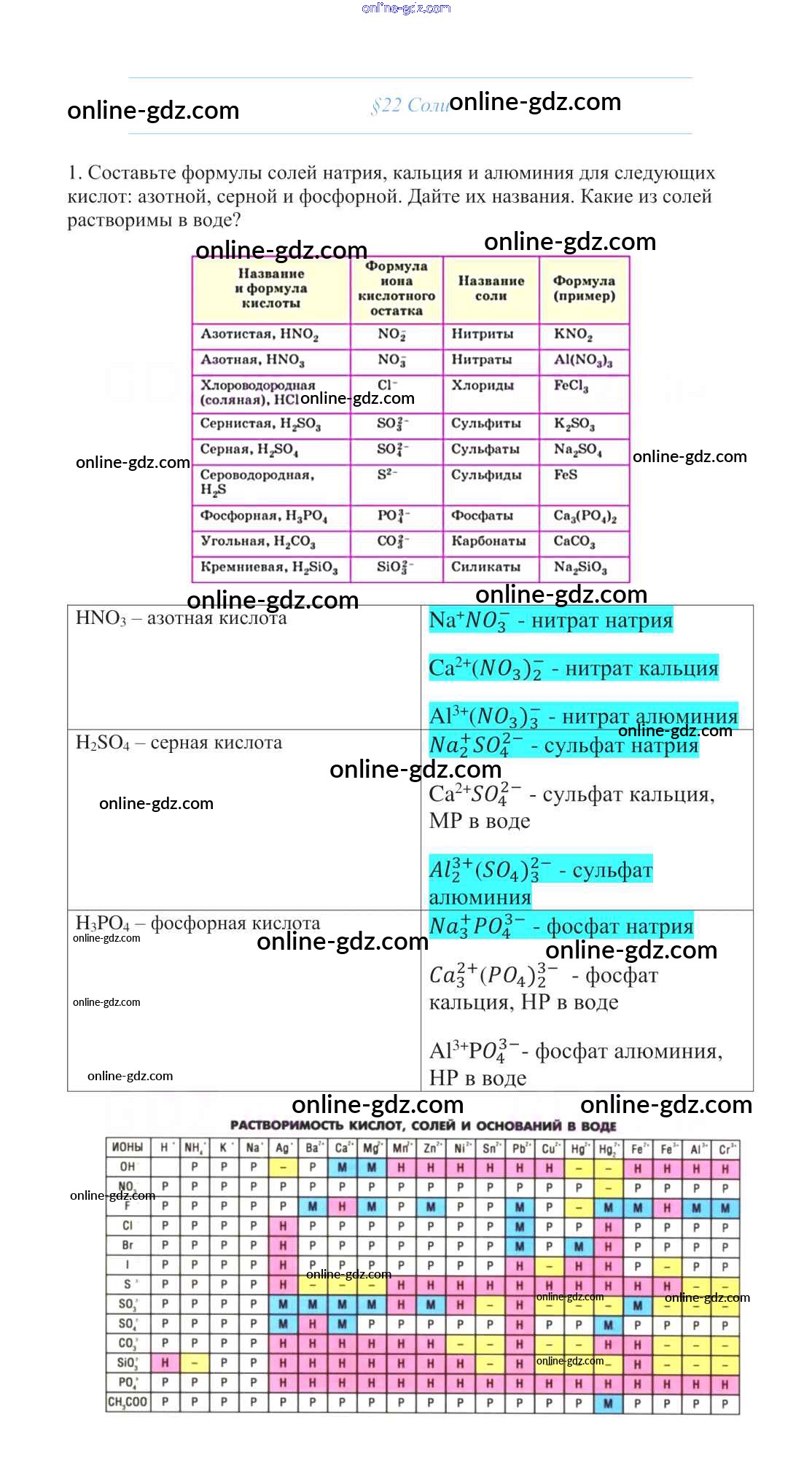 Готовые домашние задания по Химии за 8 класс Учебник Габриелян Вертикаль 2019 - §22. Соли 1