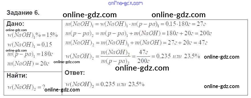 Готовые домашние задания по Химии за 8 класс Учебник Габриелян Вертикаль 2019 - §25. Массовая и объёмная доли компонентов смеси (раствора) 6