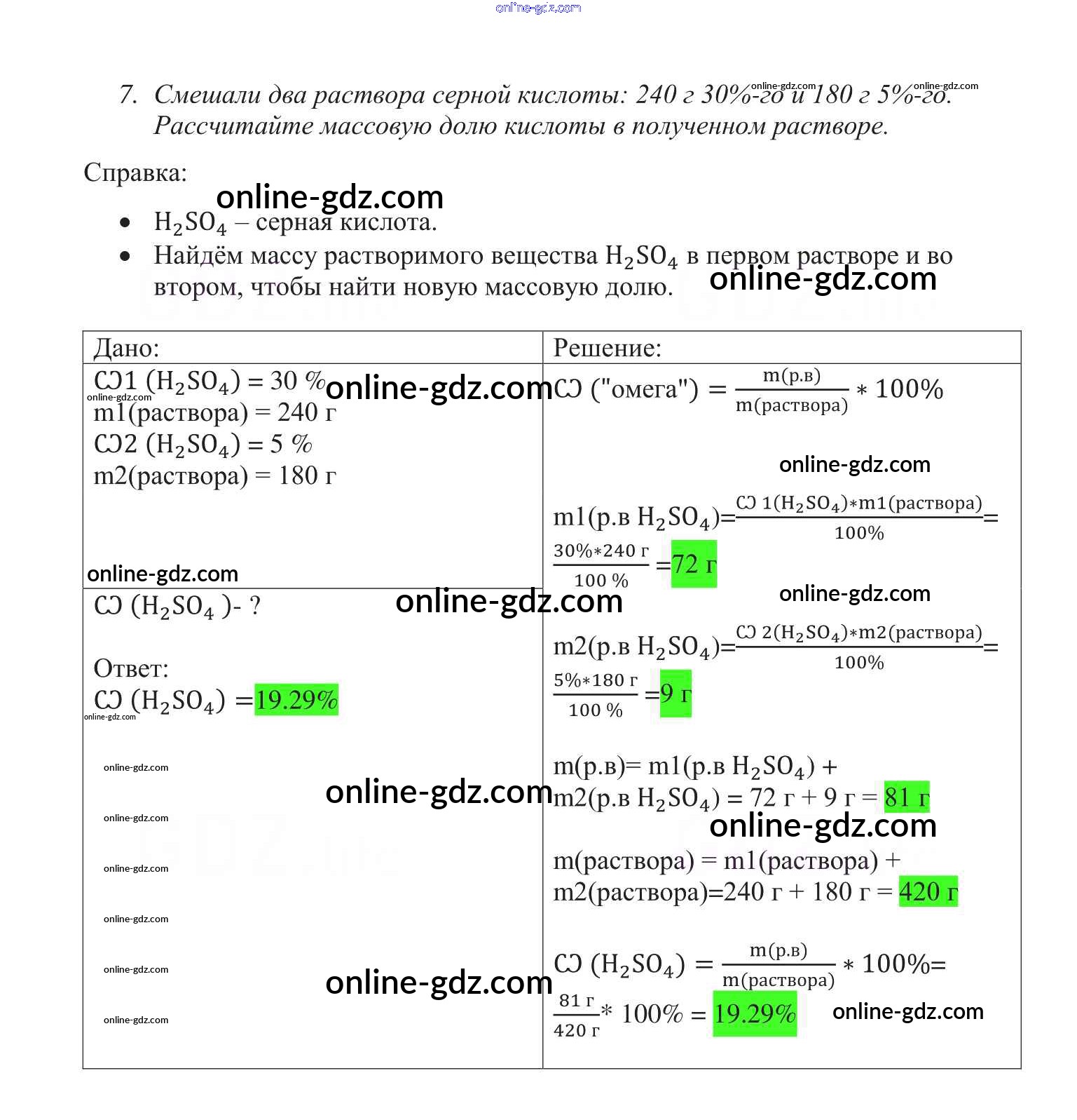 Готовые домашние задания по Химии за 8 класс Учебник Габриелян Вертикаль 2019 - §25. Массовая и объёмная доли компонентов смеси (раствора) 7