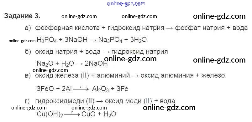 Готовые домашние задания по Химии за 8 класс Учебник Габриелян Вертикаль 2019 - §28. Химические уравнения 3
