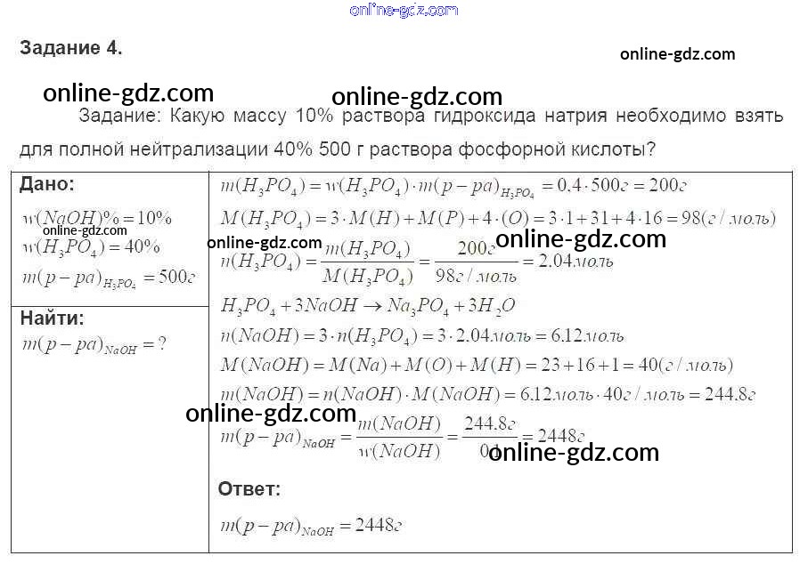 Готовые домашние задания по Химии за 8 класс Учебник Габриелян Вертикаль 2019 - §29. Расчёты по химическим уравнениям 4