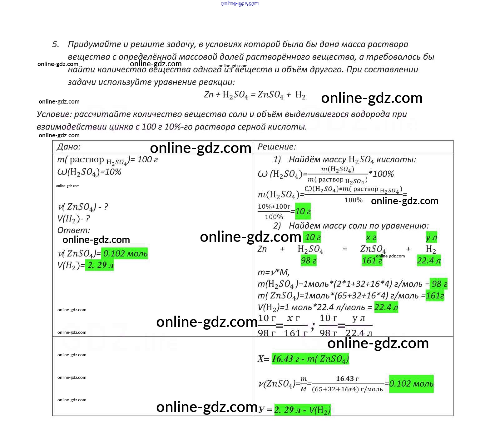 Готовые домашние задания по Химии за 8 класс Учебник Габриелян Вертикаль 2019 - §29. Расчёты по химическим уравнениям 5