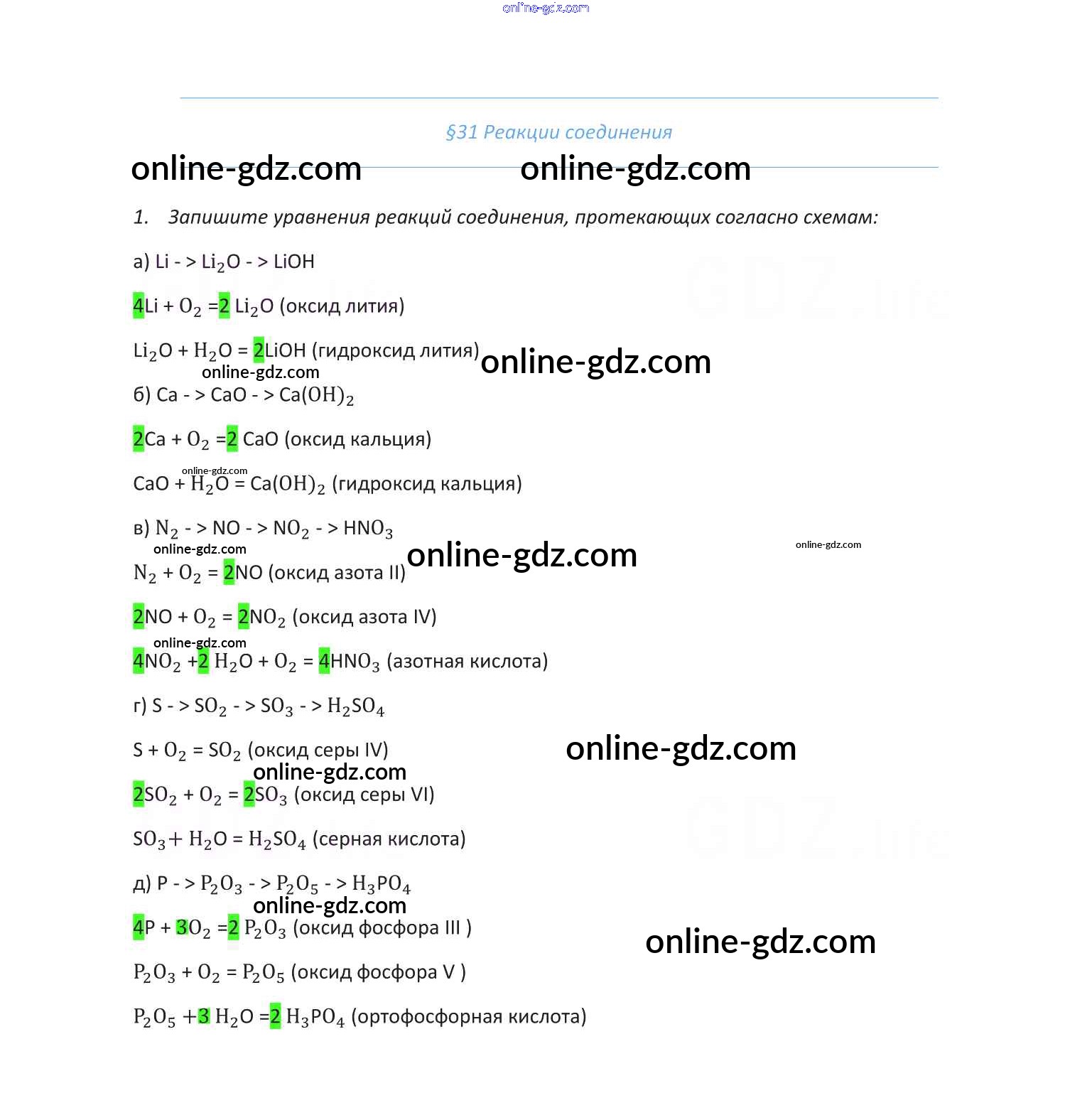 Готовые домашние задания по Химии за 8 класс Учебник Габриелян Вертикаль 2019 - §31. Реакции соединения 1