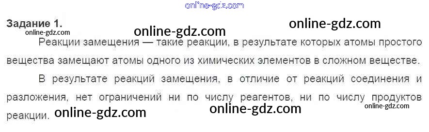 Готовые домашние задания по Химии за 8 класс Учебник Габриелян Вертикаль 2019 - §32. Реакции замещения 1
