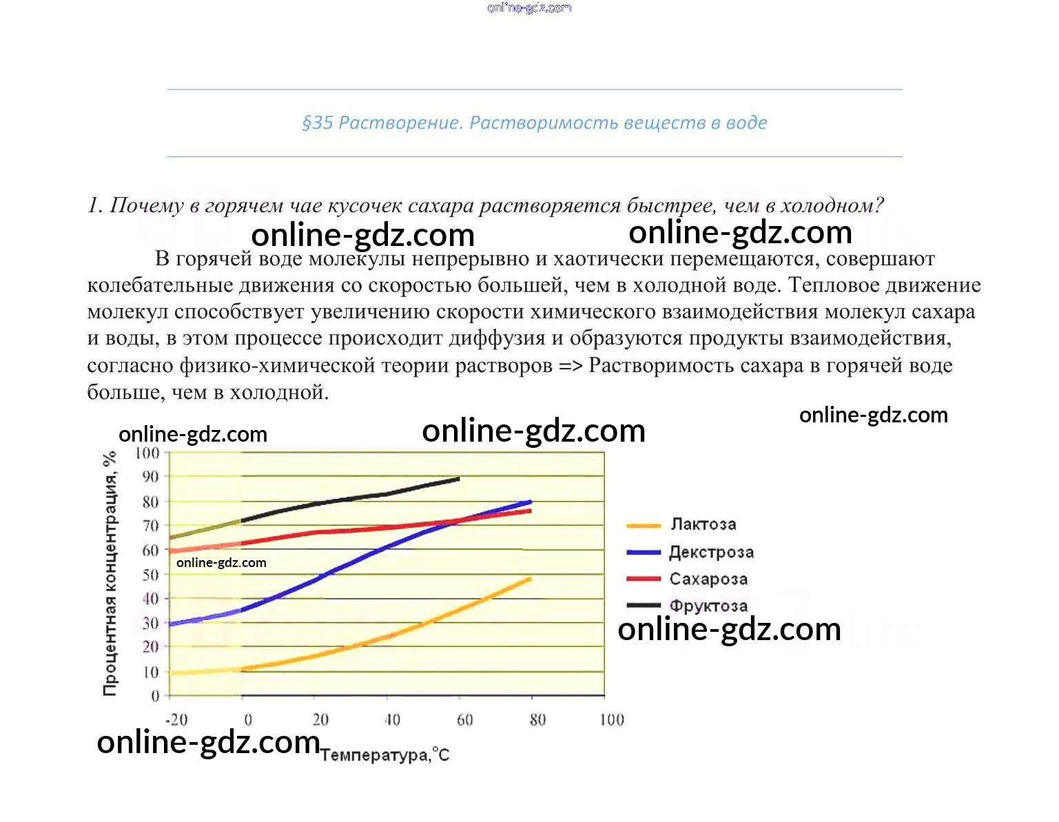 Готовые домашние задания по Химии за 8 класс Учебник Габриелян Вертикаль 2019 - §35. Растворение. Растворимость веществ в воде 1