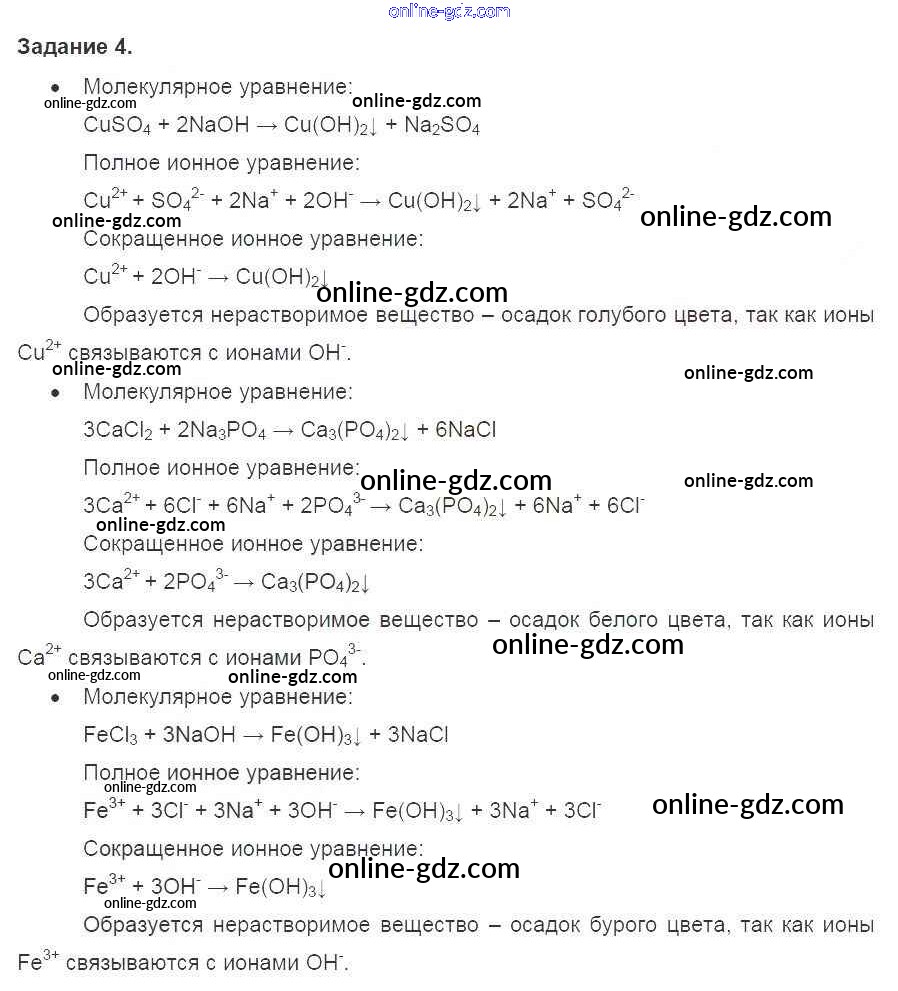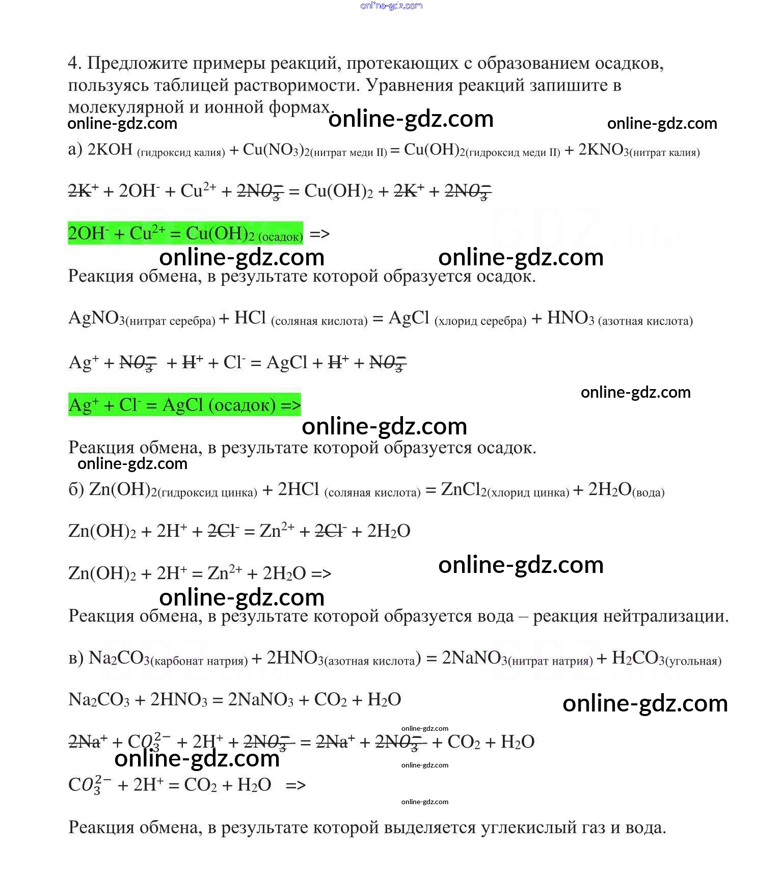 Готовые домашние задания по Химии за 8 класс Учебник Габриелян Вертикаль 2019 - §38. Ионные уравнения 4
