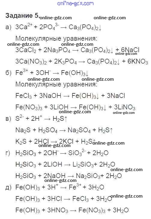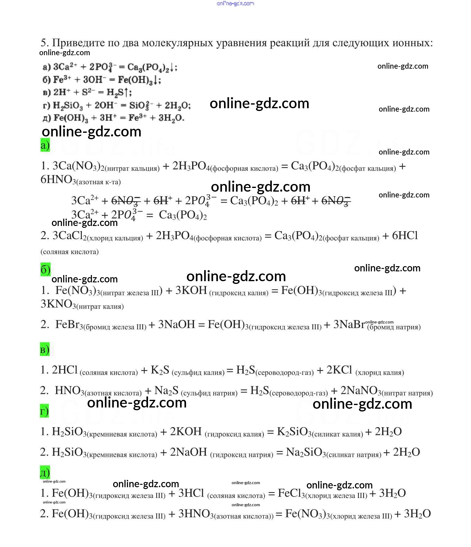 Готовые домашние задания по Химии за 8 класс Учебник Габриелян Вертикаль 2019 - §38. Ионные уравнения 5