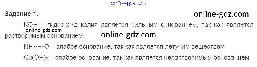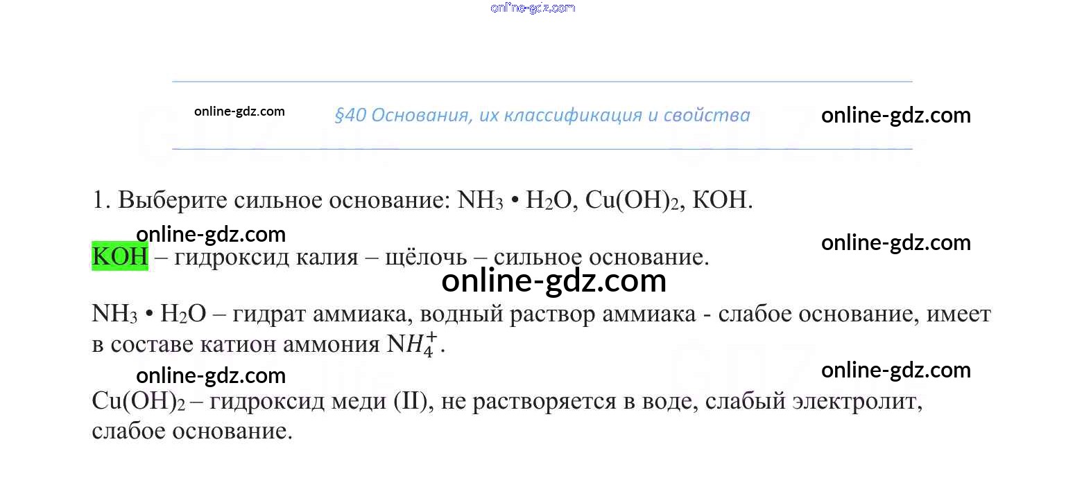 Готовые домашние задания по Химии за 8 класс Учебник Габриелян Вертикаль 2019 - §40. Основания, их классификация и свойства 1
