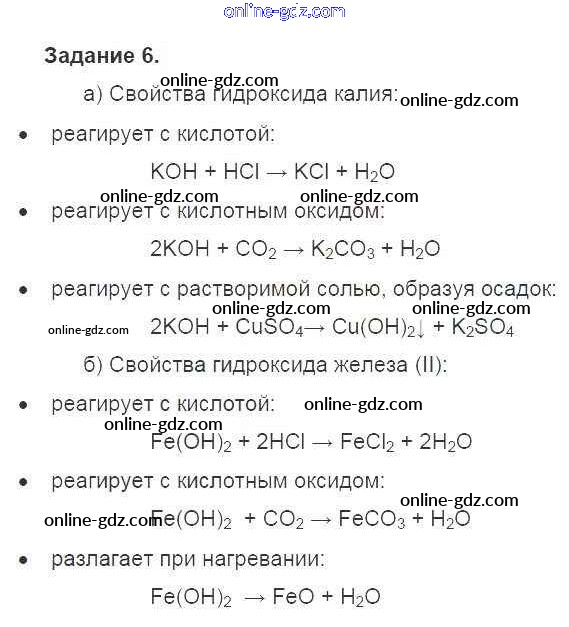 Готовые домашние задания по Химии за 8 класс Учебник Габриелян Вертикаль 2019 - §40. Основания, их классификация и свойства 6