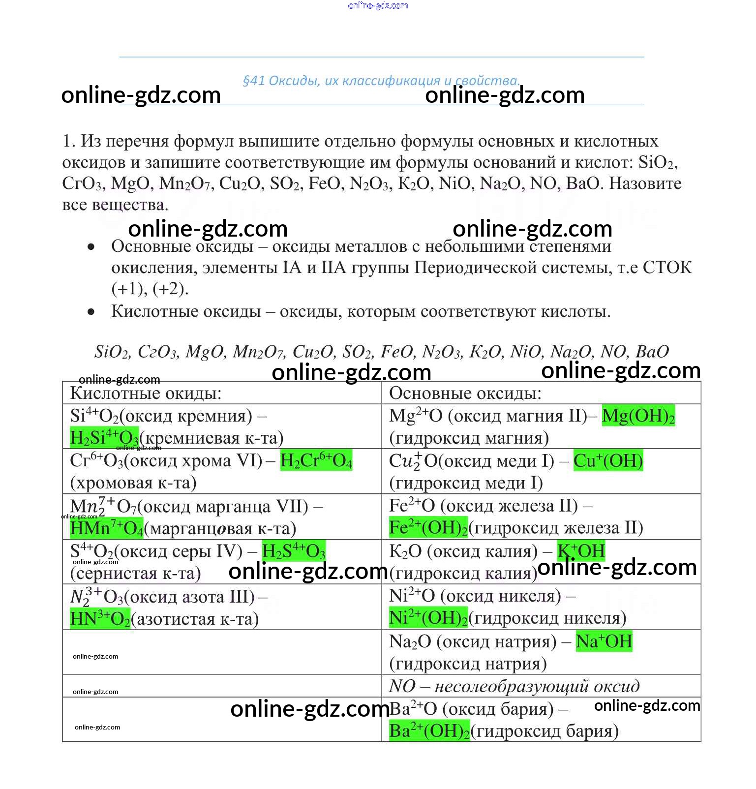Готовые домашние задания по Химии за 8 класс Учебник Габриелян Вертикаль 2019 - §41. Оксиды, их классификация и свойства 1