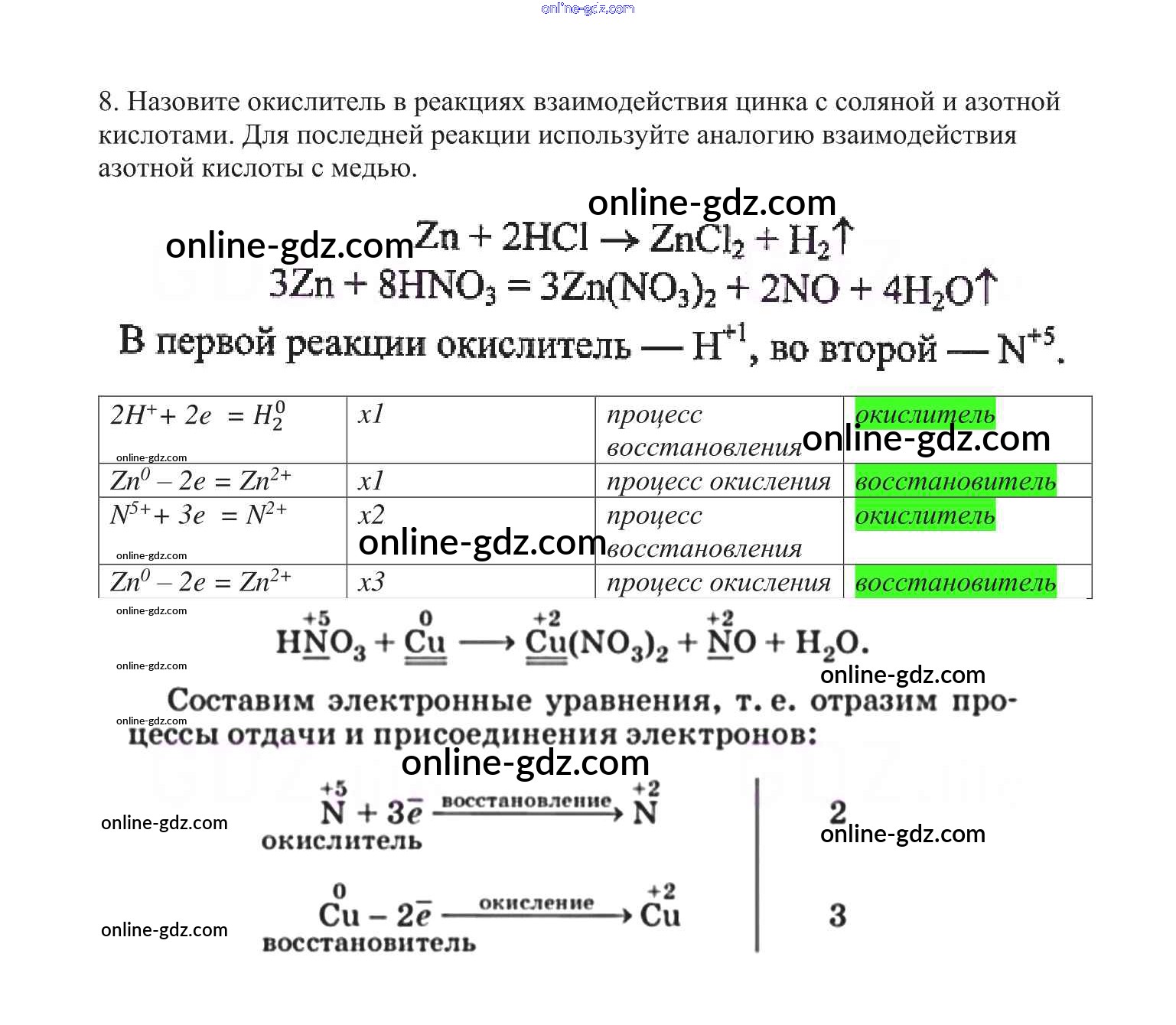 Готовые домашние задания по Химии за 8 класс Учебник Габриелян Вертикаль 2019 - §44. Окислительно-восстановительные реакции 8