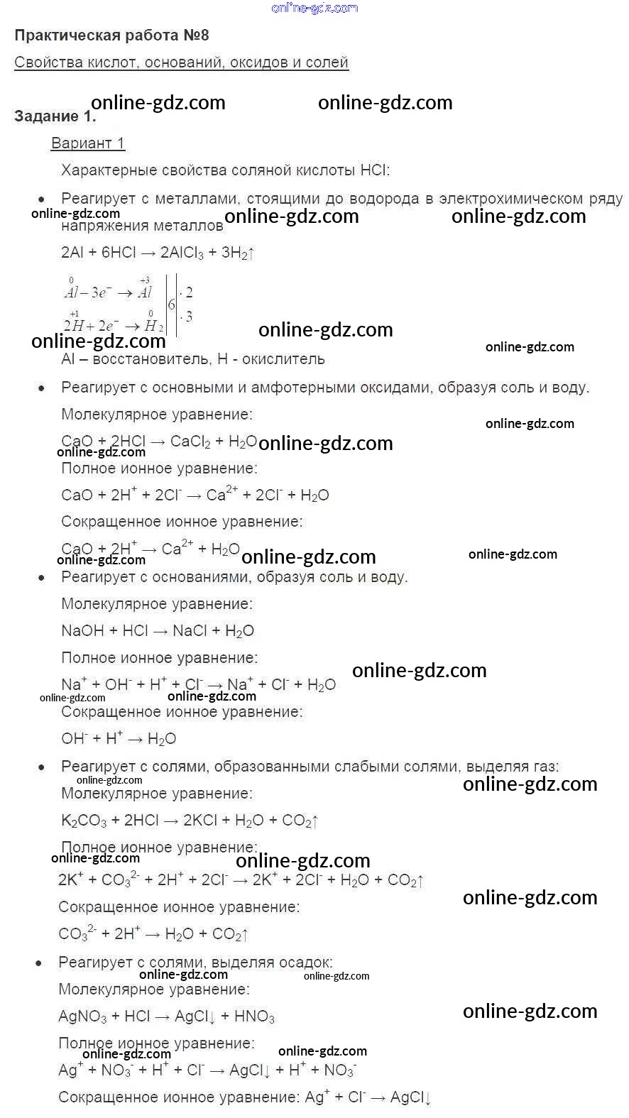 Готовые домашние задания по Химии за 8 класс Учебник Габриелян Вертикаль 2019 - Вариант 1 Пр-8 1