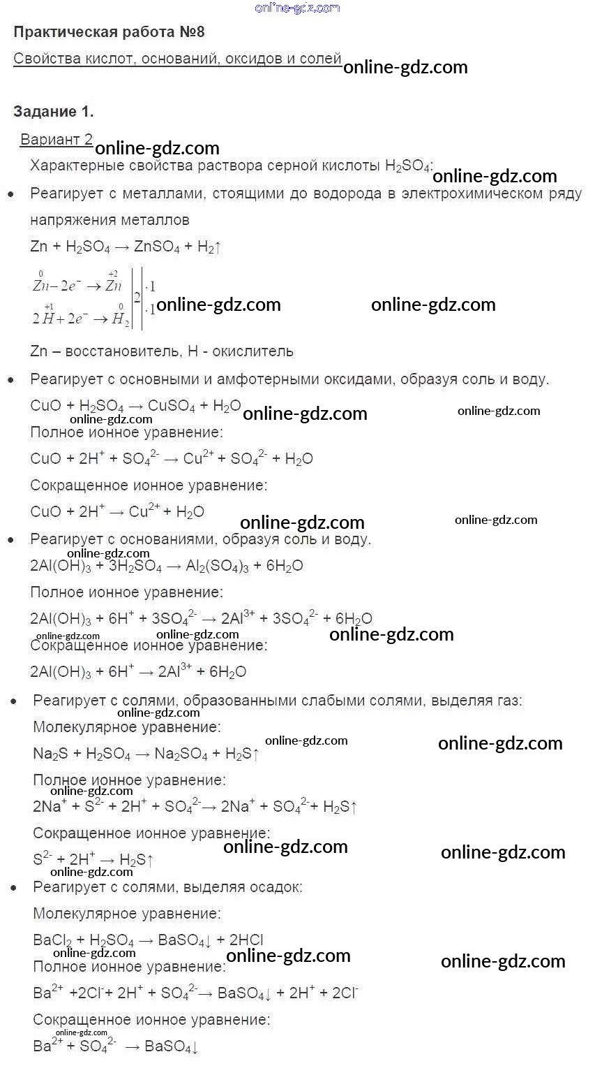 Готовые домашние задания по Химии за 8 класс Учебник Габриелян Вертикаль 2019 - Вариант 2 Пр-8 1