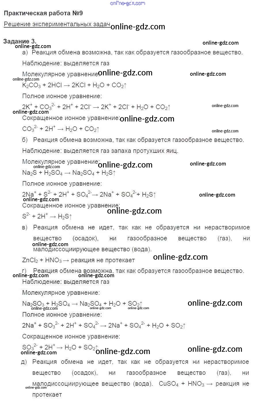 Готовые домашние задания по Химии за 8 класс Учебник Габриелян Вертикаль 2019 - Пр-9 Практические работы 3
