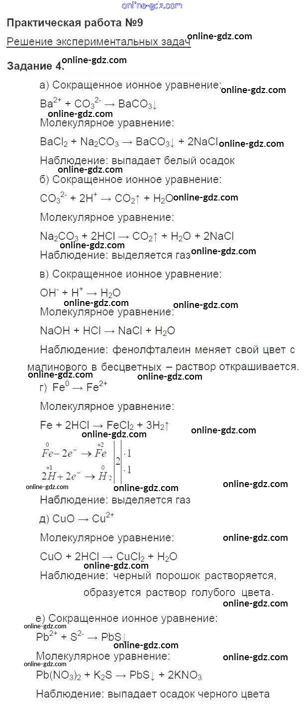 Готовые домашние задания по Химии за 8 класс Учебник Габриелян Вертикаль 2019 - Пр-9 Практические работы 4